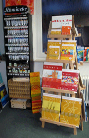 Künstlerfarben - wie Ölfarben, Künstleracryl- und Aquarellfarben führen wir von der bekannten Firma SCHMINKE. Passend dazu haben wir ein großes Sortiment an Aquarellpapieren und Skizzenblocks von der Firma Hahnemühle. Künstlerpinsel der Fa. "DA Vinci" in verschiedenen Stärken und Ausführungen. |